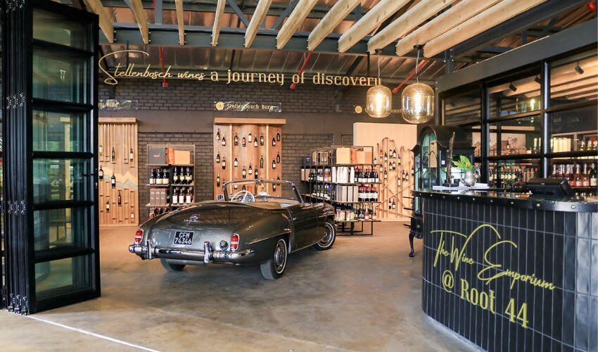 Genießen Sie ihren Wein mit reichlich Käse- und Fleischplatten  und wenn das nicht genug ist – machen Sie sich auf den Weg zum Restaurant im kontinentalen Stil, das für jeden Geschmack etwas zu bieten hat. Es gibt keinen Grund, den Tag nicht bei Root44 zu verbringen. Die erste Etage von Root44 und insbesondere The Wine Emporium ist der ideale Landeplatz für den Erstbesucher von Stellenbosch, der nur begrenzt Zeit hat, um sich einen Überblick über das Weinangebot der Region aus der Vogelperspektive zu verschaffen. Es ist der Ort, an dem Erkundung und Entdeckung im Mittelpunkt stehen, und das könnte den nächsten großen Fan  südafrikanischer Weine nach einem bemerkenswerten Verkostungserlebnis bei Root44 auf die Weinfarmen führen.
