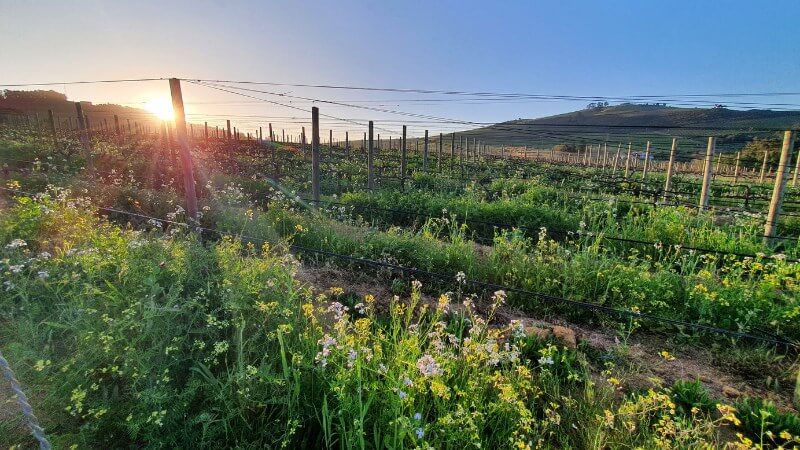 Die Philosophie der regenerativen Landwirtschaft geht auf die 1980er Jahre zurück, als der Experte für nachhaltige Landwirtschaft, Robert Rodale, den Begriff erstmals prägte. Heute fördert das Rodale Institute im US-Bundesstaat Pennsylvania diesen landwirtschaftlichen Ansatz weiter und stellt die Bodengesundheit ganz oben auf die Prioritätenliste der Landwirte. „Bei der Weinherstellung streben wir letztlich nach Ausgewogenheit“, sagt Alastair Rimmer, Kellermeister bei DeMorgenzon Wine Estate außerhalb von Stellenbosch. „Und für mich geht es beim regenerativen Weinbau darum, das Gleichgewicht im Boden wiederherzustellen. Der Versuch, eine Umgebung zu schaffen, die gleichermaßen weniger schädlich für die Welt um uns herum und vorteilhaft für die Reben ist.“ „Alles hängt vom Boden ab“, stimmt van Rensburg zu. „Wir müssen uns auf die Bodengesundheit konzentrieren. Wir brauchen Biodiversität und wir brauchen gesunde Ökosysteme. Wir müssen lernen, im Einklang mit der Natur zu wirtschaften. Am Ende führt dieser Ansatz automatisch auch zu gesünderen Reben.“ Ausgangspunkt beim Blick auf den regenerativen Weinbau ist für viele Winzer, das Potenzial von Zwischenfrüchten / Sekundärkulturen zu nutzen. Gemeint ist damit die bewusste und zielgerichtete Pflanzung anderer Kulturen auf den Freiflächen zwischen den Rebstöcken.